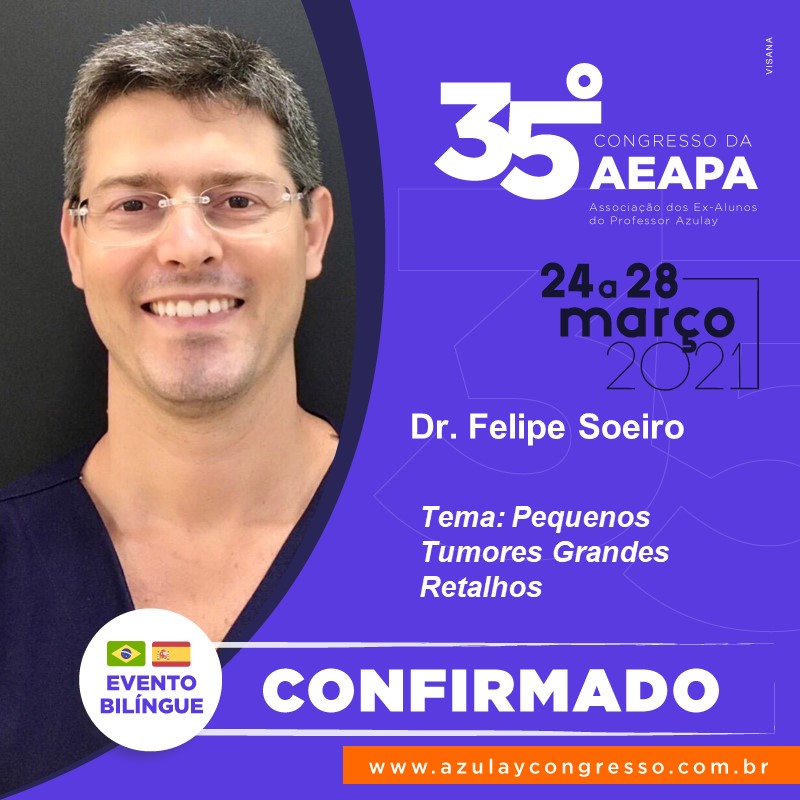 O Dr. Felipe palestrará no 35º Congresso AEAPA, que acontece entre os dias 24 e 28 de março. O tema de sua palestra será "Pequenos tumores, grandes retalhos".